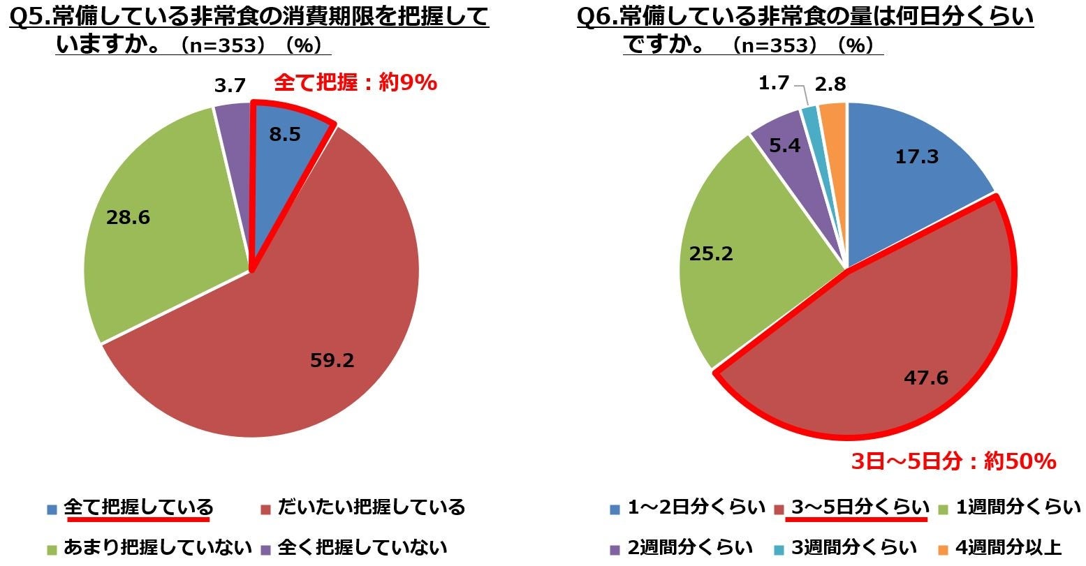 また、非常食を常備していても、全ての消費期限を把握している人の割合は1割にとどまり、「あまり把握していない」「全く把握していない」人が3割という結果になりました。