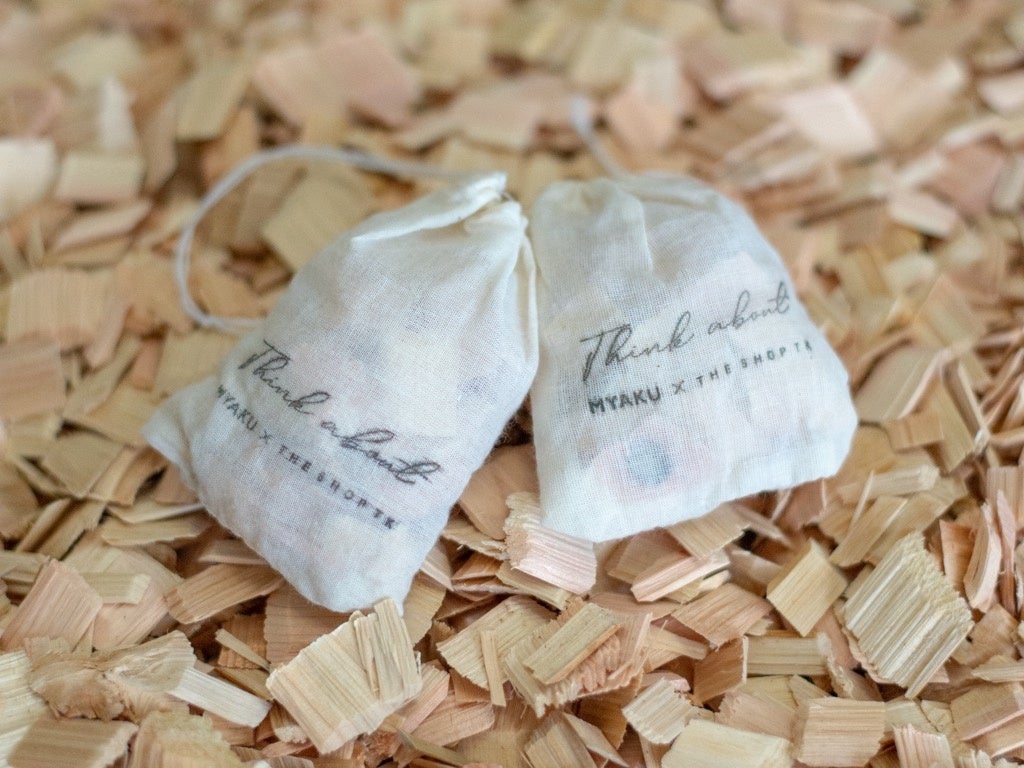 お買い上げのお客さま先着50名様限定で「“MYAKU×THE SHOP TK”ひのき香るウッドチップの芳香剤」をプレゼント!