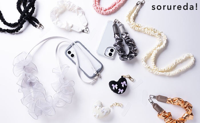 韓国トレンドを意識した"可愛い"が詰まったアイテムを展開する「sorureda! 」シリーズから、「くしゅくしゅハンドストラップ」・「くしゅくしゅショルダーストラップ」・「チュールショルダーストラップ」・「リボン付きハートチャームストラップ」が登場します。