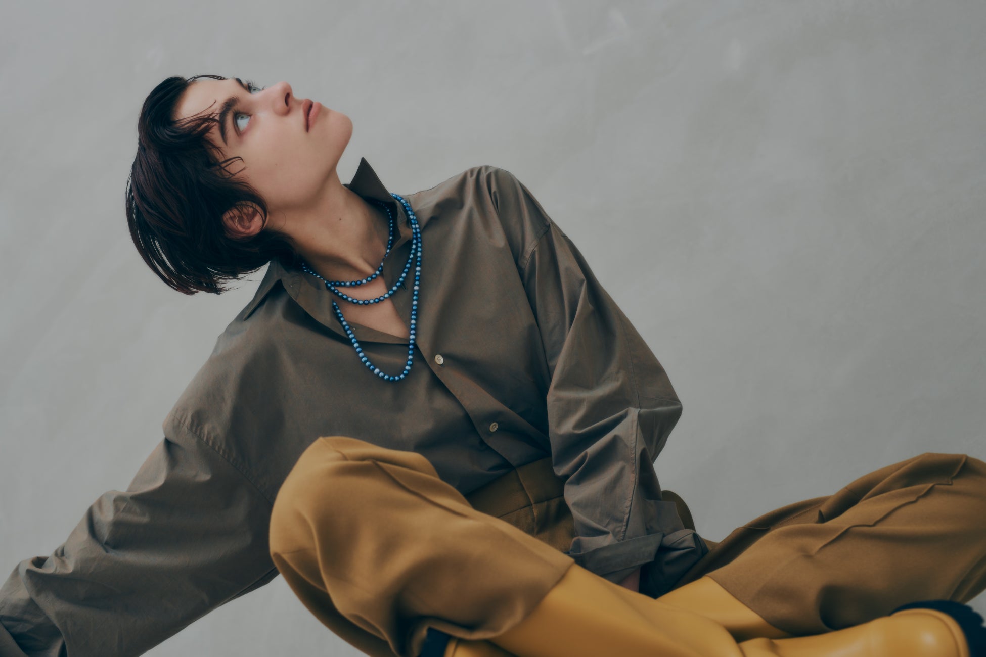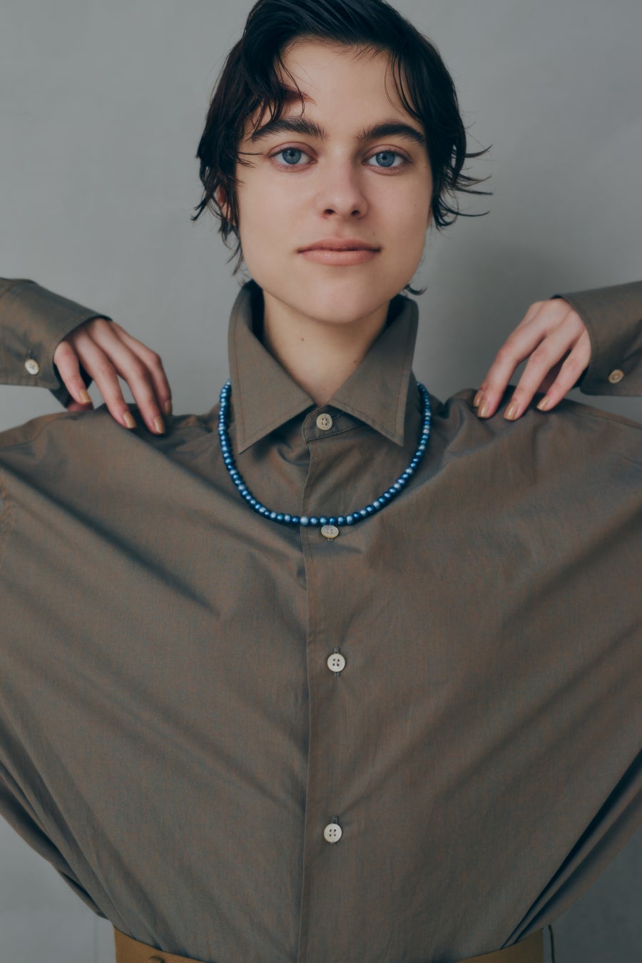 約3mm~6.5mmのサイズの淡水パールを一周連ねたネックレス。全長 40cm、43cm、60cm の 3パターンを展開。形や色合いがひとつずつ異なるパールが、奥深さのある表情を醸し出します。