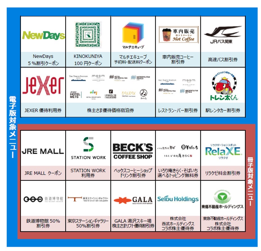 〇株主サービス券について、次回発行分(2026年6月下旬発送予定)より、JR東日本グループのエキナカコンビニ「NewDays」でのお買い物がいつでも5%割引になる新メニュー等の設定※や、既存メニューの変更を行うほか、株主サービス券の発行基準を見直し、100株以上ご所有の株主の方からお受け取りいただけるようになります。