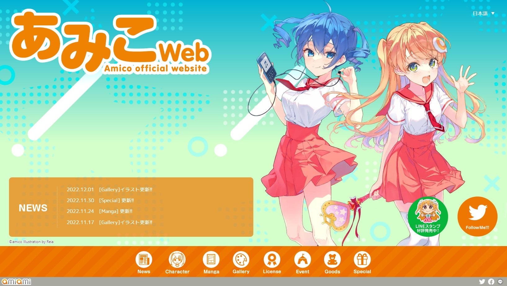 「あみこ」の公式ホームページ。様々なイラストレーターが描く「あみこイラスト」、ツナマヨ先生の「あみこまんが」を掲載。この他に、三面図・設定画も掲載し立体イベントでの「アマチュア版権」「法人版権」の受付も行っています。