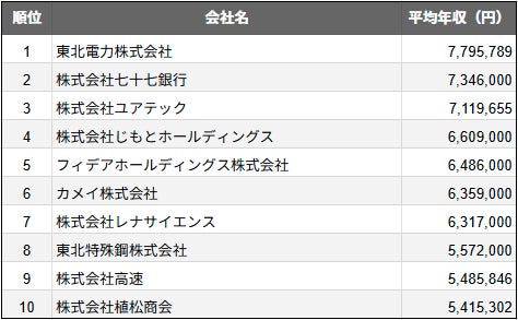 【2025年最新版】仙台市:上場企業平均年収ランキングTOP10/SalesNow DBレポート