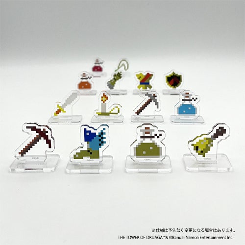 ドルアーガの塔 40周年記念アイテム。ドット絵のアクリルスタンド。アイテムA(14種)をまとめたセット商品です。