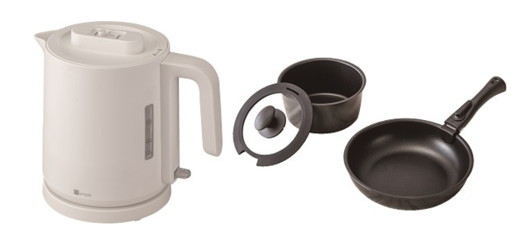限られたキッチンスペースにも置ける、コンパクトな調理家電や、重ねて収納できる鍋・フライパンセット。どんな料理にも使える食器セットもそろえれば、おうちごはんもラクラク。