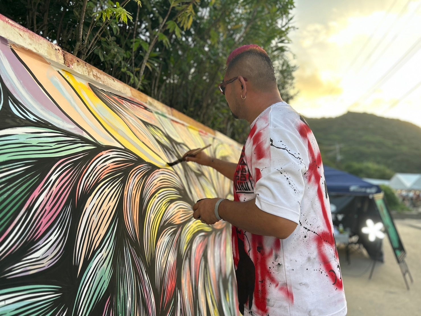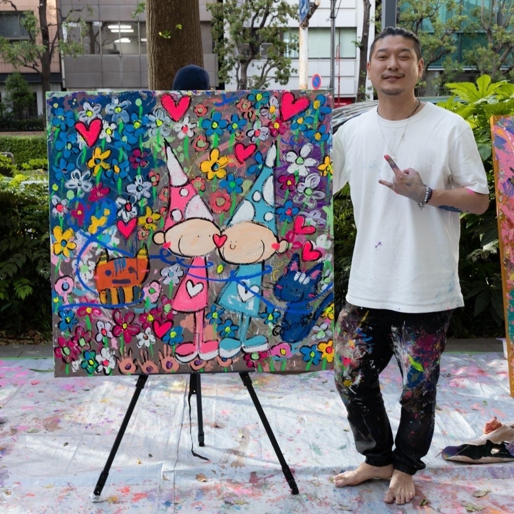 大柄の風貌からは想像も出来ない繊細なアーティスト。幼少期から親の影響で絵に興味を持った。現在は木彫りとステンシルを融合した現代アートを制作中。日本国内に留まらず海外での展示会やライブペイントを手かげている。