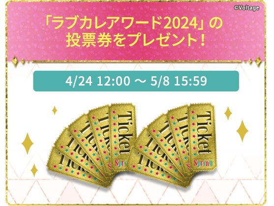 株式会社ボルテージ(本社:東京都渋谷区 代表取締役:津谷 祐司)は、当社が提供中のボル恋タイトルのストーリーアバター型(ソーシャル版) アプリに登場するキャラクターの人気投票イベント「ラブカレアワード2024 Spring ~目覚めのキスは誰のもの?~」(以下、ラブカレアワード)の投票受付を4月25日(木)より開始することをお知らせいたします。