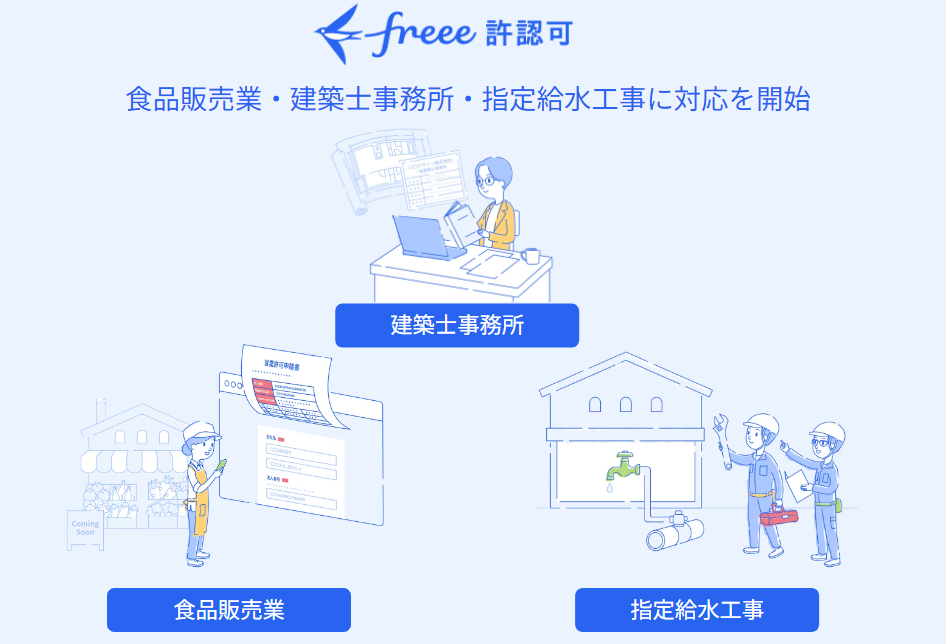 freee許認可、食品販売業・建築士事務所・指定給水工事に対応を開始