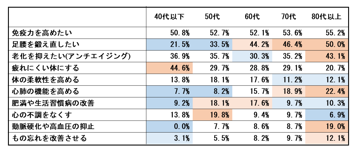 ■「免疫力高めたい」は各世代共通、「足腰の鍛え直し」は高年代ほど