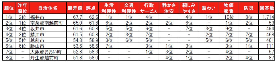 街の住みここちランキング2025<福井県版>自治体TOP8・因子別順位