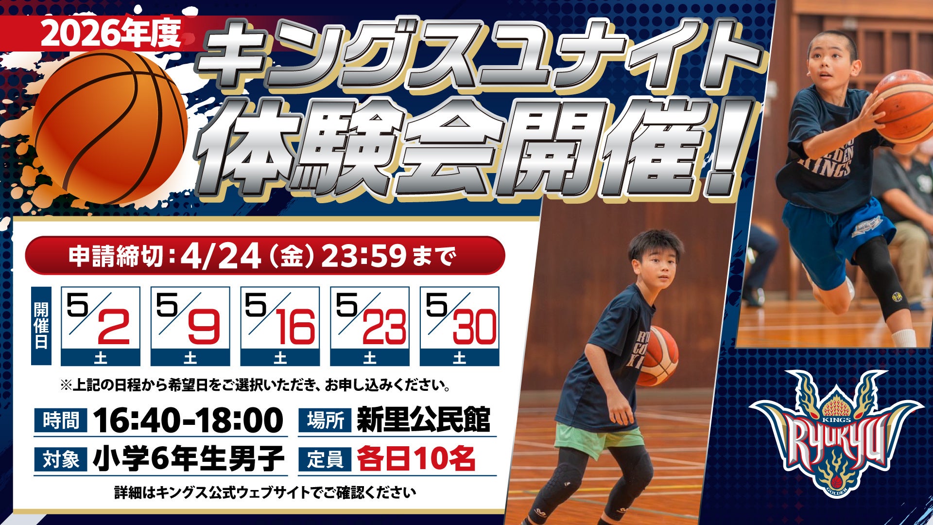 この度、琉球ゴールデンキングスアカデミーではキングスユナイト男子クラスにて体験会を開催いたします。