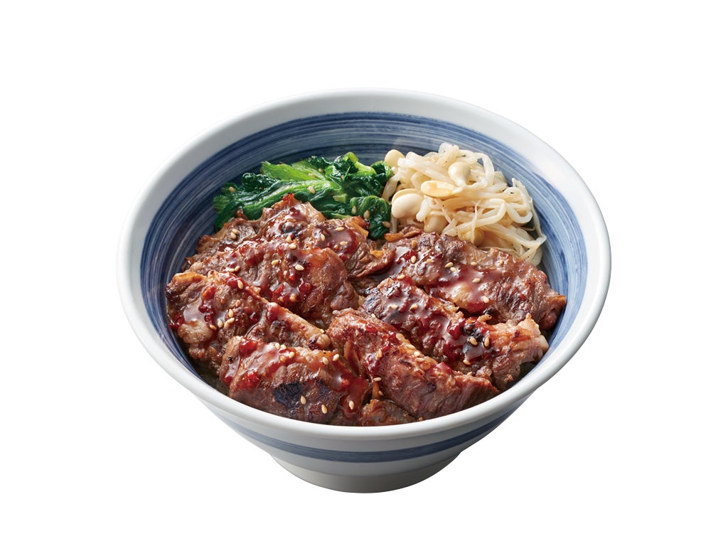 看板商品の「焼きたてのカルビ丼」は、毎日店舗で丁寧にスライスした新鮮なカルビ肉を、ご注文いただいてから強火で一気に焼き上げて、肉本来の旨味と香ばしさを引き立てます。タレは20種類の調味料を秘伝の配合でブレンドし、甘み・辛味・酸味を絶妙なバランスで仕上げました。ごはんは国産米を100%使用しており、お肉やタレとの相性は抜群です。