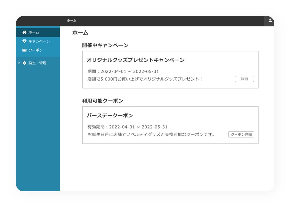 また、会員向けマイページも自動生成され、ユーザーは対象のキャンペーン・クーポンの確認や利用が可能
