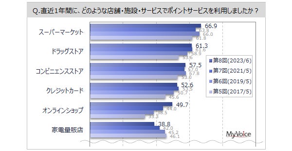 過去調査と比べて、「楽天ポイント」「Pontaポイント」「dポイント」が増加傾向