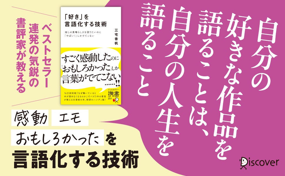 株式会社ディスカヴァー・トゥエンティワン(本社:東京都千代田区、代表取締役兼社長執行役員:谷口奈緒美)は2024年7月31日に『「好き」を言語化する技術 推しの素晴らしさを語りたいのに「やばい!」しかでてこない』(三宅香帆著)を刊行しました。