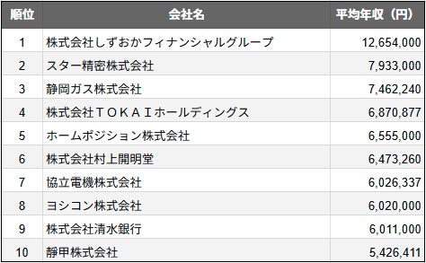 【2025年最新版】静岡市:上場企業平均年収ランキングTOP10/SalesNow DBレポート