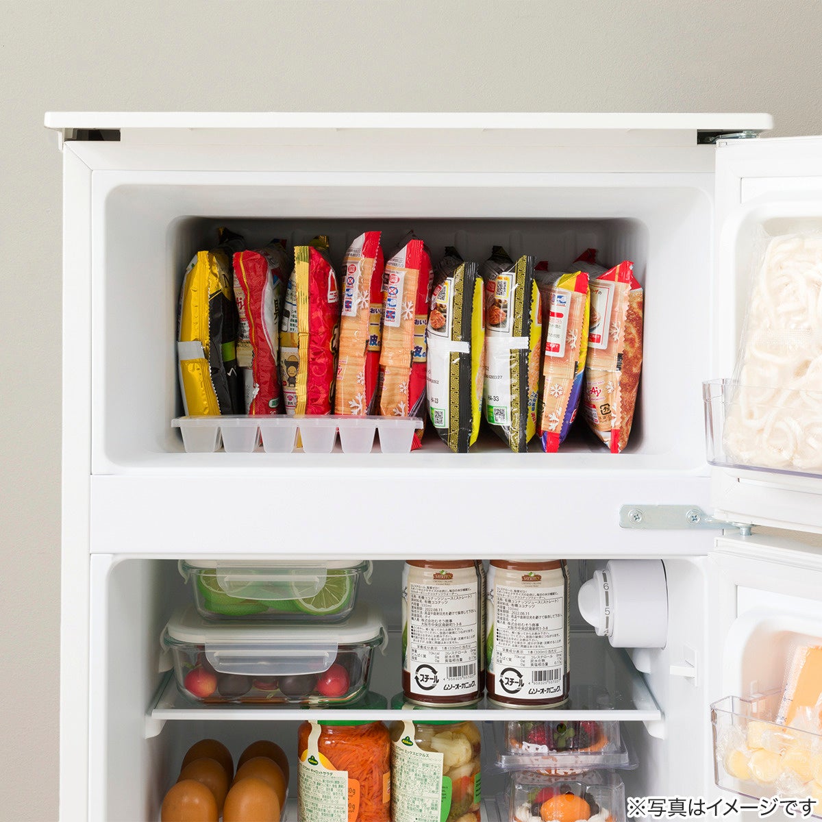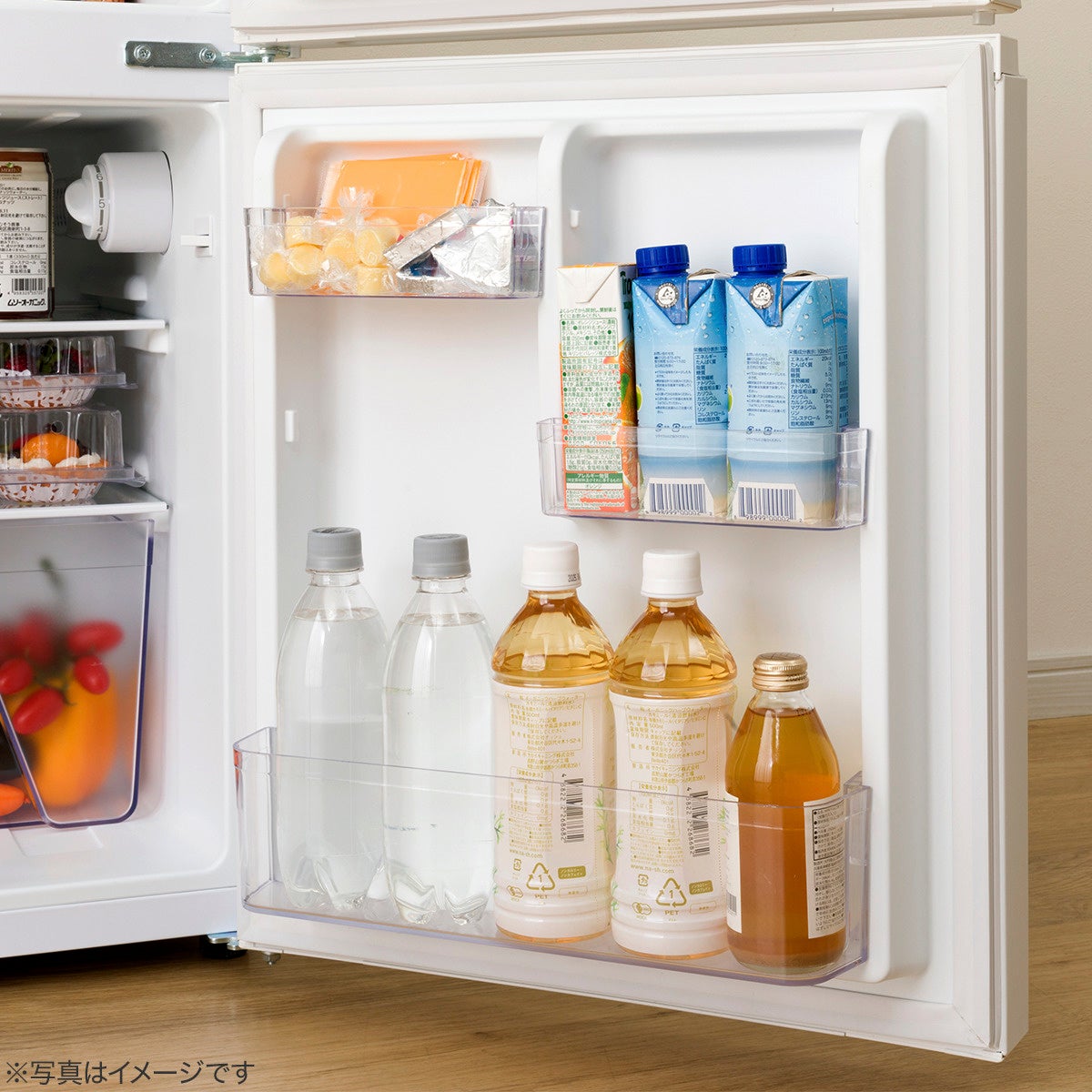 冷蔵室63L、冷凍室26Lのコンパクトサイズながら4つのドアポケットを採用。食材を無駄なく整理しやすくなっています。