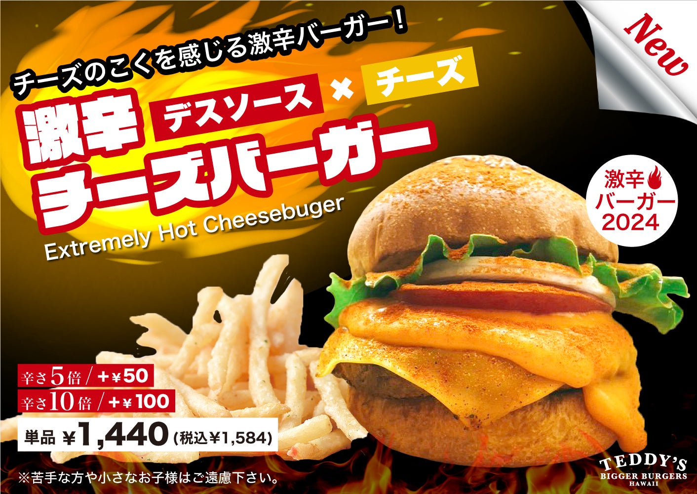 【激辛バーガー2024】5倍~10倍まで選べる辛さ!チーズのコクを感じる「激辛チーズバーガー」、ハワイ発「テディーズビガーバーガー」より新登場!