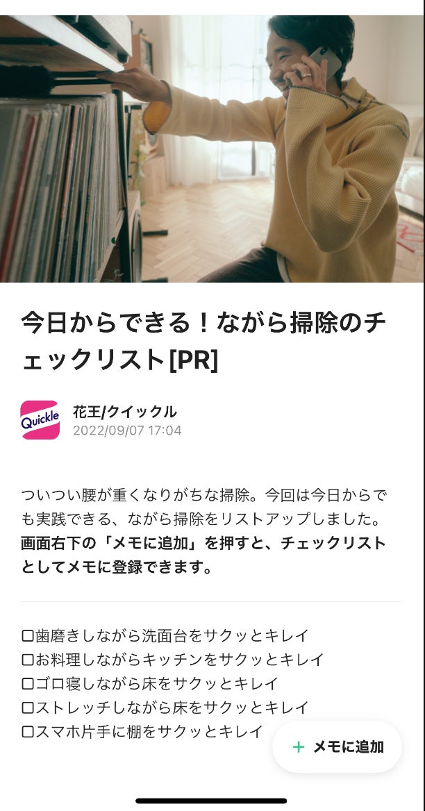 ➁ 「チェックリスト」機能で継続的なおそうじ習慣に向けた事前準備が整う!
