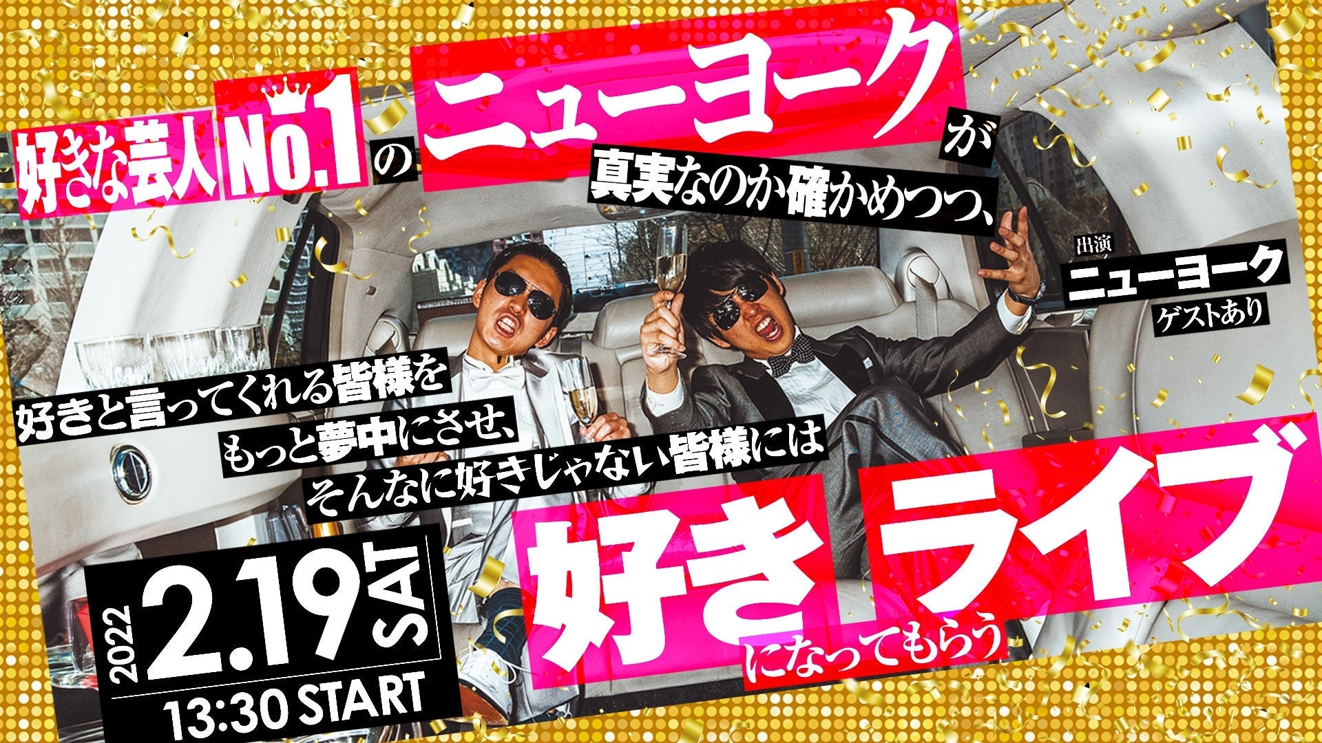 - 好きな芸人No.1ニューヨークが真実なのか確かめつつ、好きと言ってくれる皆様をもっと夢中にさせ、そんなに好きじゃない皆様には好きになってもらうライブ