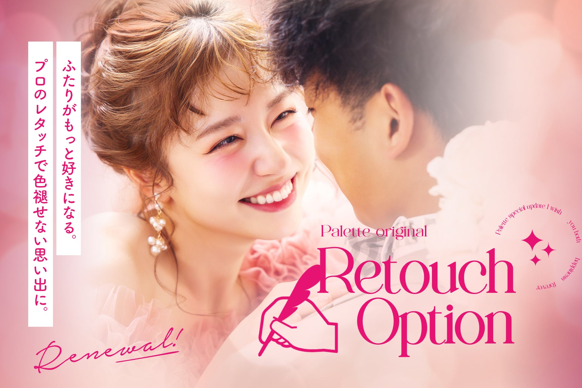もう写真写りに怯えない。プロの技術で「気になるところ」だけを自然に解消する、新しいレタッチオプションが登場。肌トラブルやボディラインの不安をゼロにして、当日は心からの笑顔で一生に一度の瞬間を楽しんで。