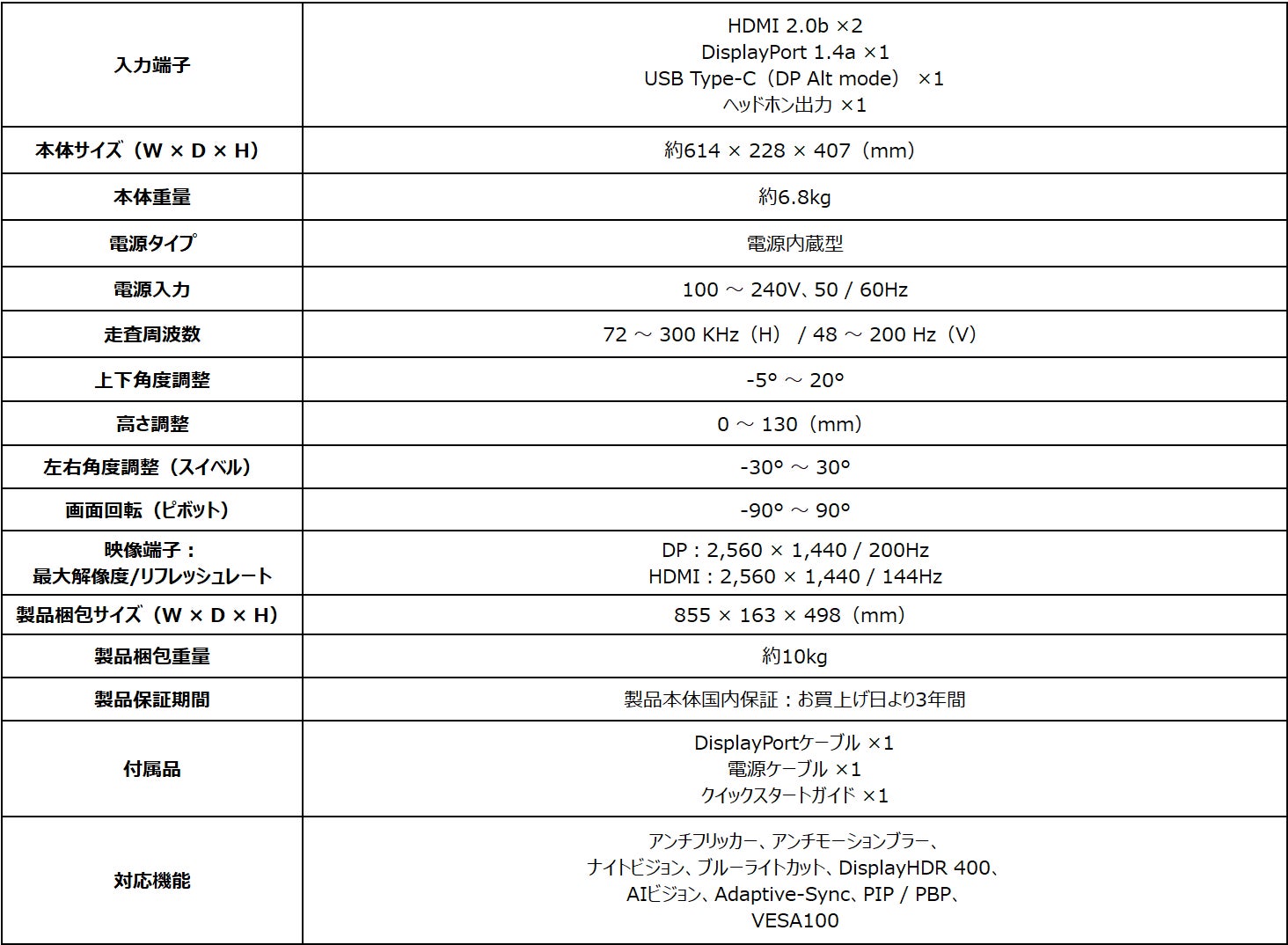 DisplayHDR 400対応