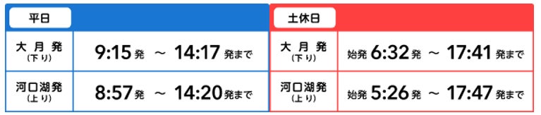 以下の時間帯の富士急行線車両の普通電車のみご利用頂けます。