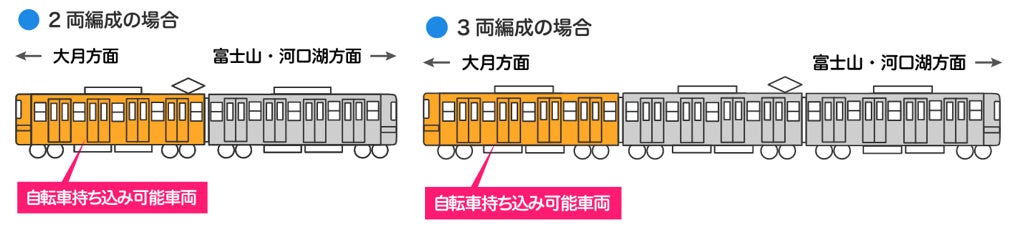①持込車両 大月~富士山間での大月方1両(1号車)のみ ※一般客のご乗車も可能です。