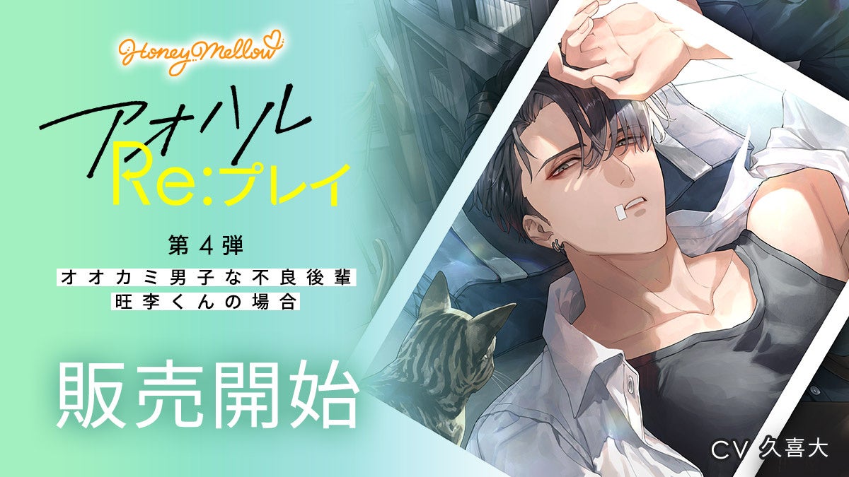 株式会社ボルテージ(本社:東京都渋谷区 代表取締役:津谷 祐司)は、シチュエーションドラマCDレーベル「Honey Mellow」の人気シリーズ「アオハルRe:プレイ Vol.4 ~オオカミ男子な不良後輩・旺李くんの場合~」 (CV.久喜大) を5月2日(木)よりダウンロード配信を開始したことをお知らせいたします。
