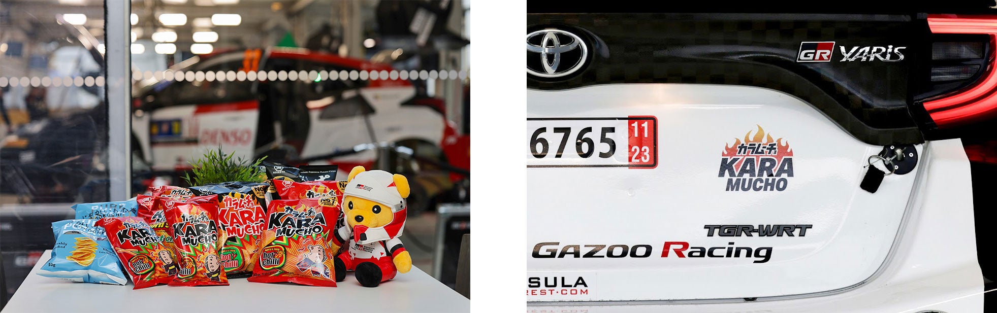 WRC(FIA世界ラリー選手権)Rd.11(チリ)では、「GRモルカーポテト1ムーチョ」が「カラムーチョ ホットチリ味」を届けてくれましたが、Rd.12(セントラル・ヨーロピアン)にもEU圏で販売中の「KARA MUCHO(カラムーチョ)」等を湖池屋よりお届けしました。Rd.12では「KARA MUCHO(カラムーチョ)」ロゴをつけた「GR YARIS Rally1 HYBRID」がドイツ・チェコ・オーストリアを駆け抜けました。