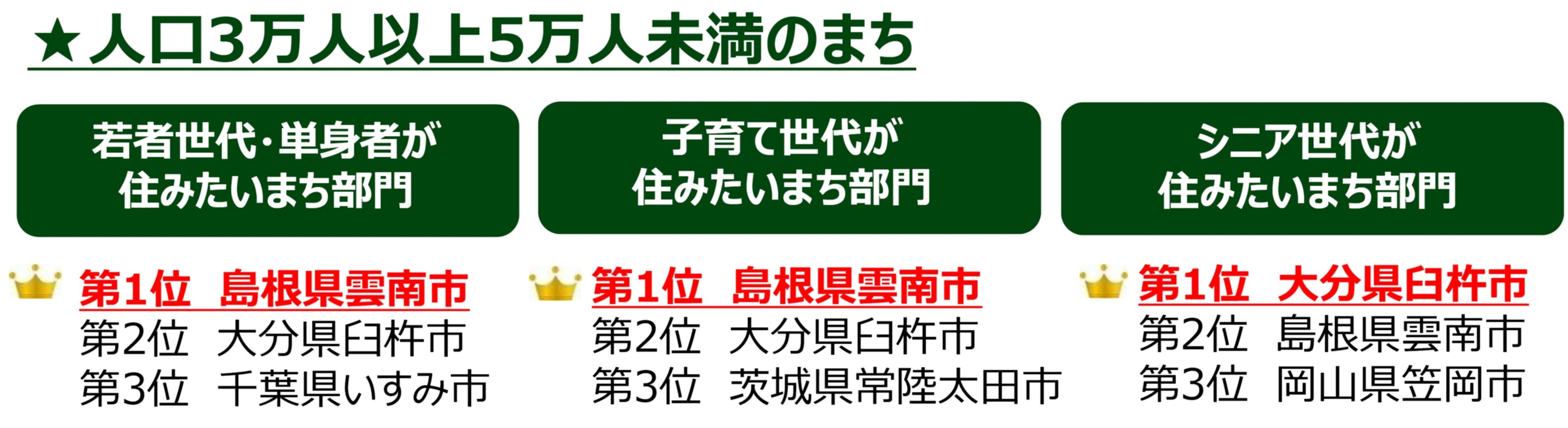 - 人口別に5グループに分けて、世代別の3部門を発表!