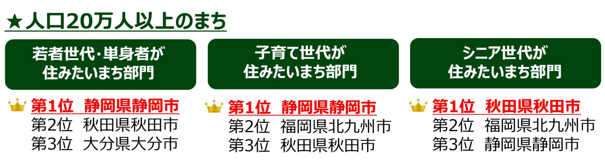 「人口1万人以上3万人未満のまち」では大分県豊後高田市が【若者世代・単身者部門】【子育て世代部門】【シニア世代部門】1位の3冠で10年連続ベスト3入りを達成。173項目もの支援で全世代の支持を集め、まさに全国有数の移住先進地といえます。「人口20万人以上のまち」では秋田県秋田市が【シニア世代部門】で初の1位を獲得。高齢者に優しい都市を目指しており、緊急時の通報システムなど、シニア層に向けた手厚いサポートを実施しています。また、秋田駅周辺はマンション建設が進み、駅近住まいがシニア世代に人気です。さらに今年は、全国を12に分けたエリア別ランキングでも【若者世代・単身者部門】【子育て世代部門】【シニア世代部門】の3部門を発表しています。ランキング情報の使用や編集長の取材も可能ですので、ぜひお問い合わせいただければ幸いです。