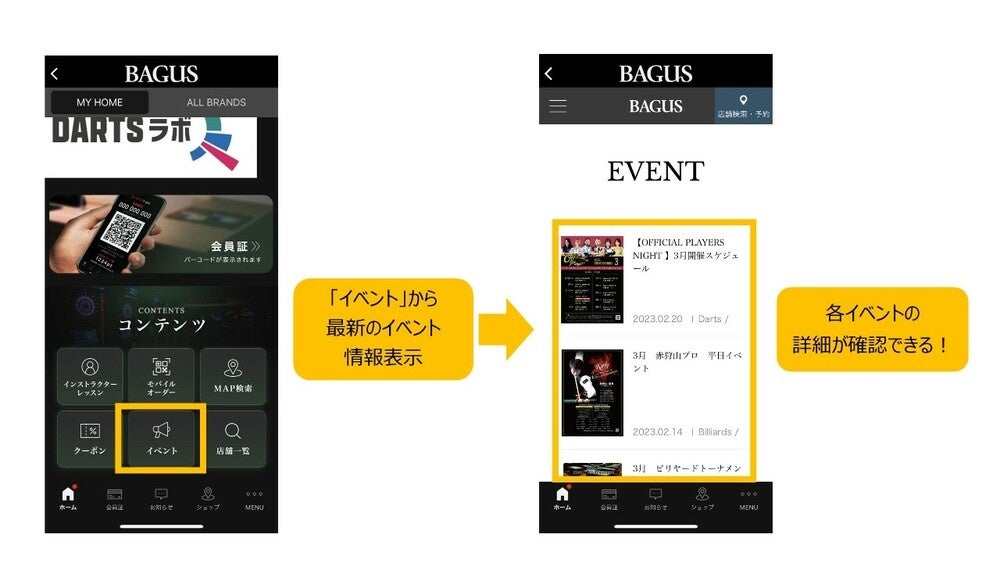 都内を中心にビリヤード、ダーツ、インターネットカフェを展開するBAGUSブランドの公式アプリがカスタマイズされて新登場!