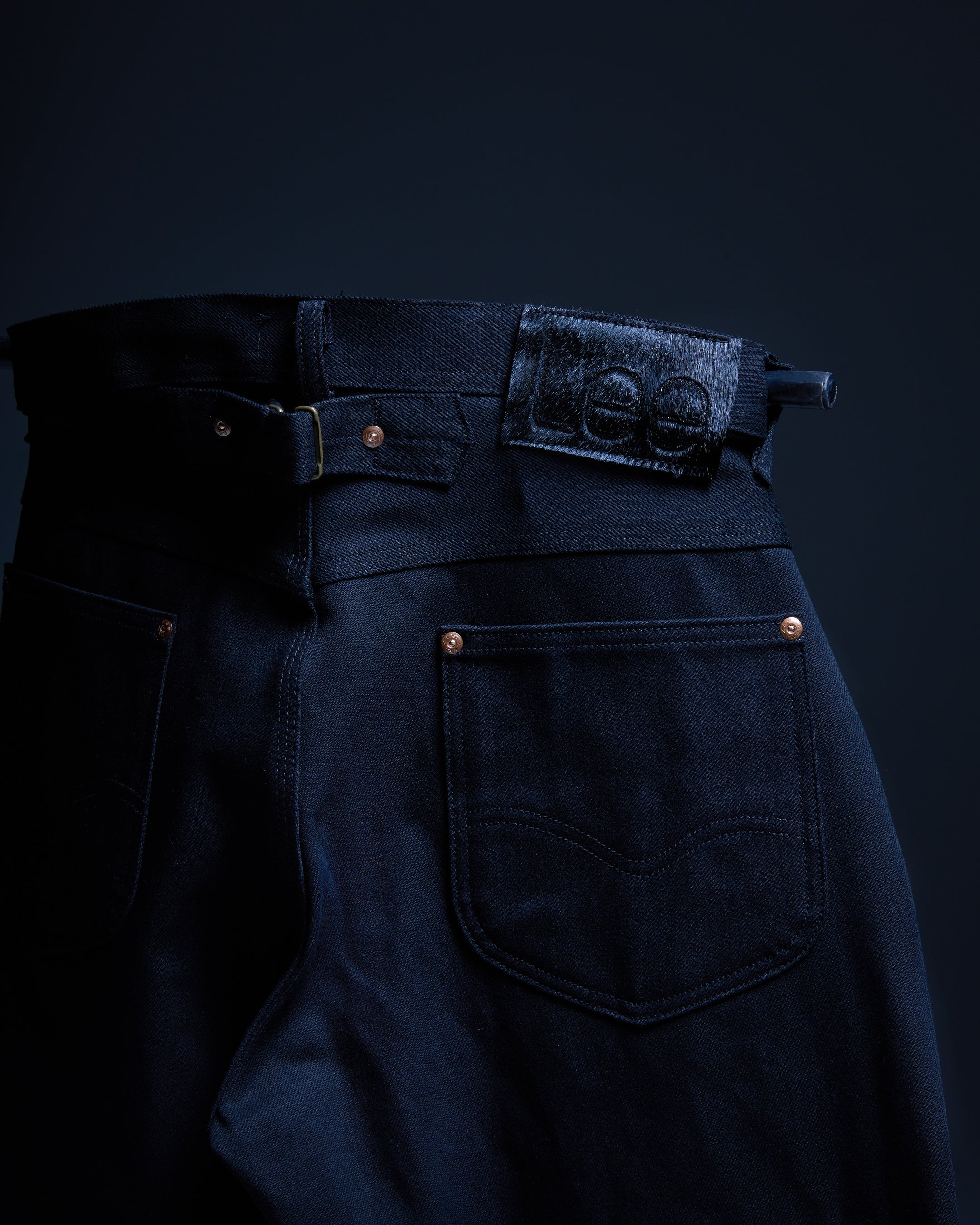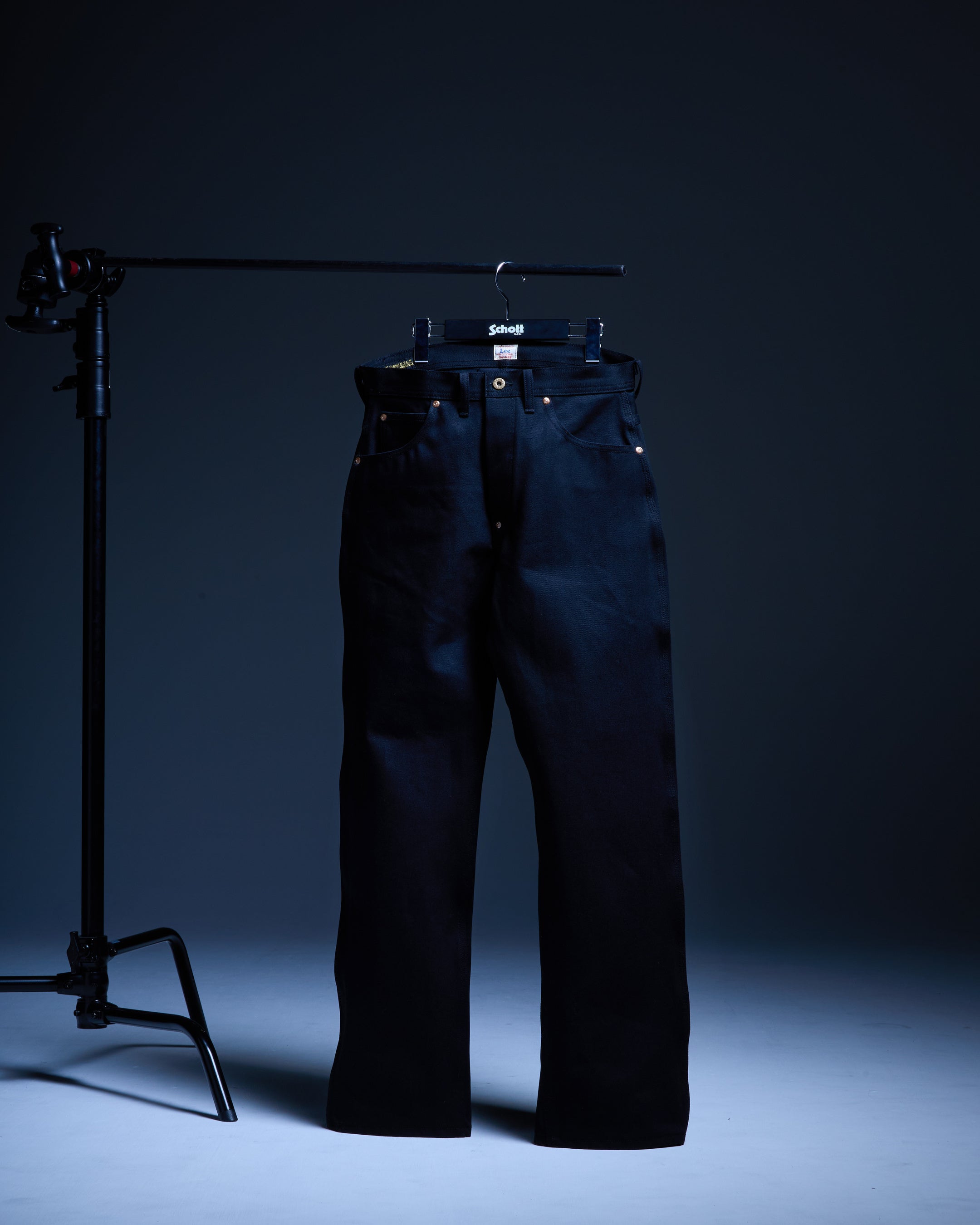 生地には日本国内で生産された13oz右綾ブラックデニムを採用。