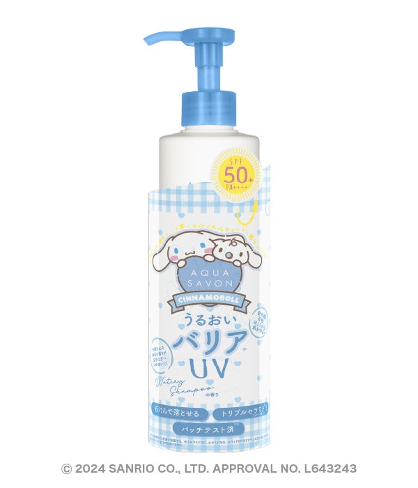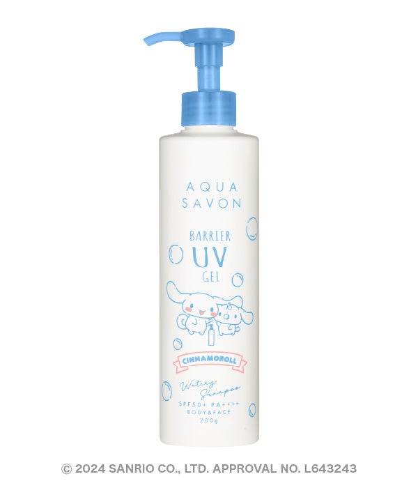 フレグランス、時計、ファッション雑貨等のブランドを取り扱う専門商社である株式会社ウエニ貿易(本社:東京都台東区、代表取締役社長:宮上光喜)は、せっけんの香りをテーマにしたコスメティックブランド「アクア シャボン(https://aquasavon.jp/)」から、株式会社サンリオの「シナモロール」とコラボした「バリアUVジェル ウォータリーシャンプーの香り」の200gポンプタイプと30g直塗りタイプの2種類を2月1日(木)にEC先行発売、2月20日(火)に一般発売いたします。