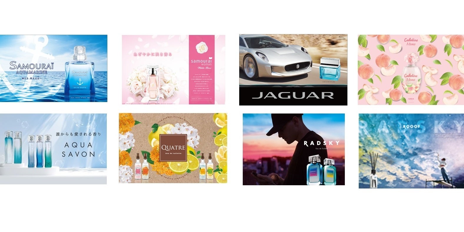 輸入卸として培ってきた実績とノウハウを礎に、日本正規代理店・オリジナルブランドの事業を拡大。フレグランスでは「サムライ」「ジャガー」「グレ」の総代理店を務める一方、メーカーとして「アクア シャボン シリーズ」「ボトコラックス ブラック」を開発する等、幅広いビジネスモデルで多数のブランドを展開しています。