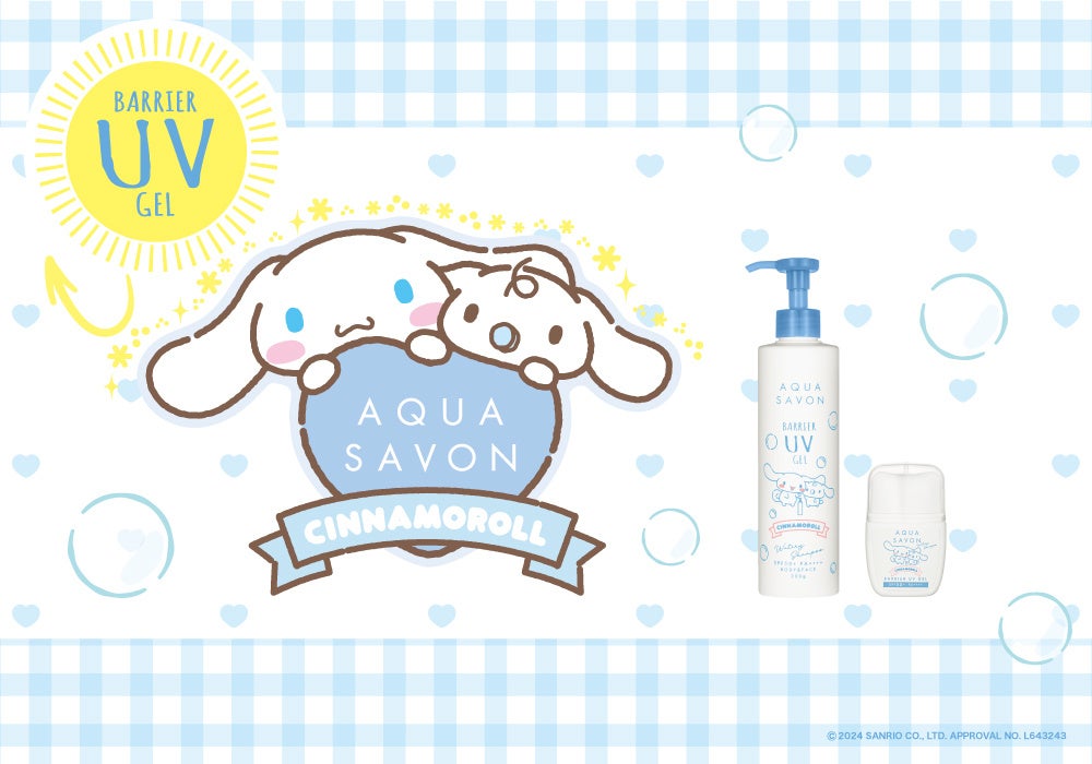 毎年完売のサンリオ人気キャラクター「シナモロール」コラボの『アクア シャボン バリアUVジェル』新デザインがポンプタイプと直塗りタイプの2種類で登場!