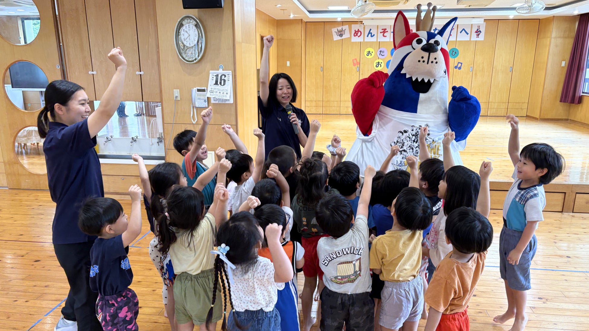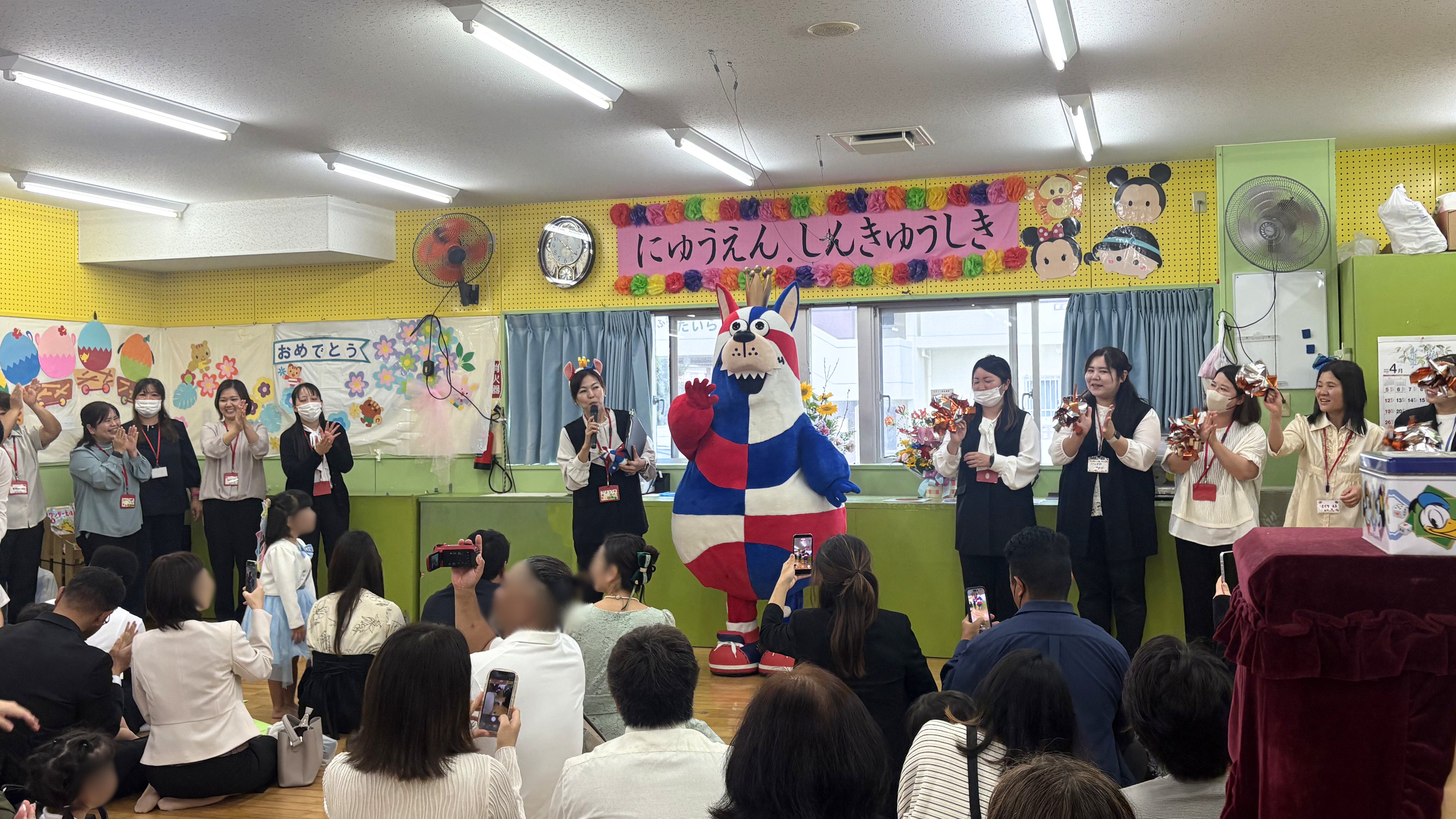 入園式では、新しい園生活のスタートを感じさせるあたたかい雰囲気の中、先生方や子どもたちと一緒にダンスを披露しました。少し緊張した様子の子どもたちも、ゴーディーと写真撮影をしながら自然と笑顔が広がり、楽しく交流することができました。