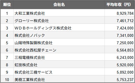 【2025年最新版】姫路市:上場企業平均年収ランキングTOP10/SalesNow DBレポート