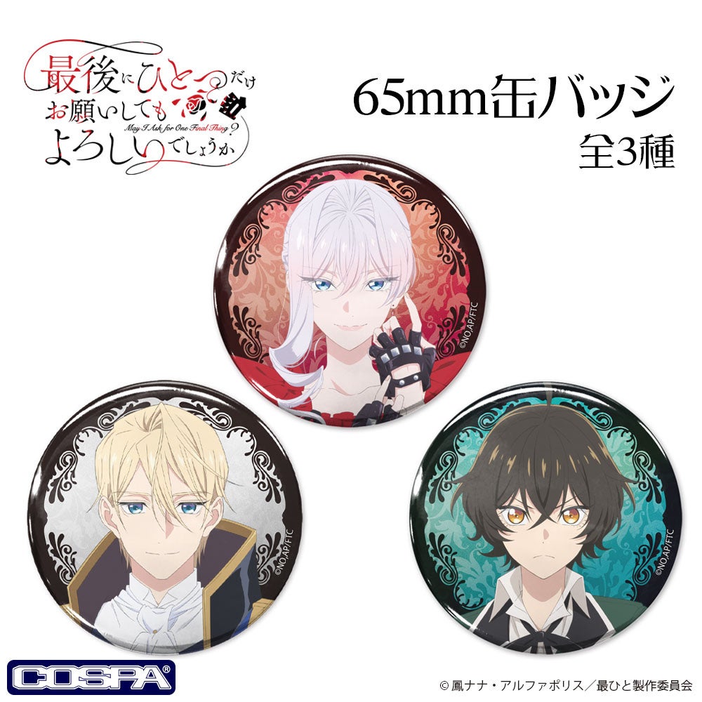 TVアニメ『最後にひとつだけお願いしてもよろしいでしょうか』より、スカーレットたちの「アクリルスタンド」「缶バッジ」などが新登場!【株式会社コスパ】