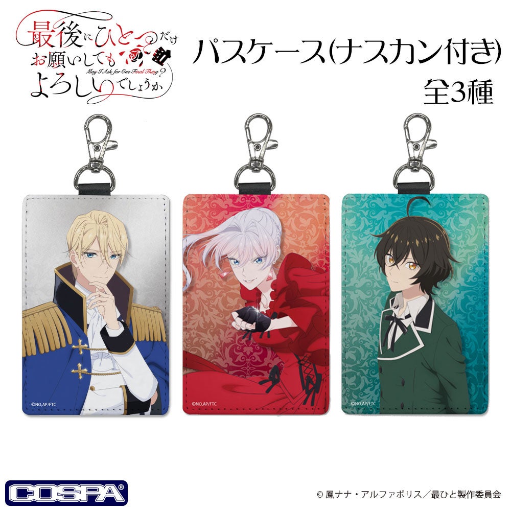 公式キャラクターコスチュームやアパレル・グッズの企画、開発、製造を行う株式会社コスパ(所在地:東京都渋谷区、代表取締役:松永芳幸)は、TVアニメ『最後にひとつだけお願いしてもよろしいでしょうか』新グッズを発表した。