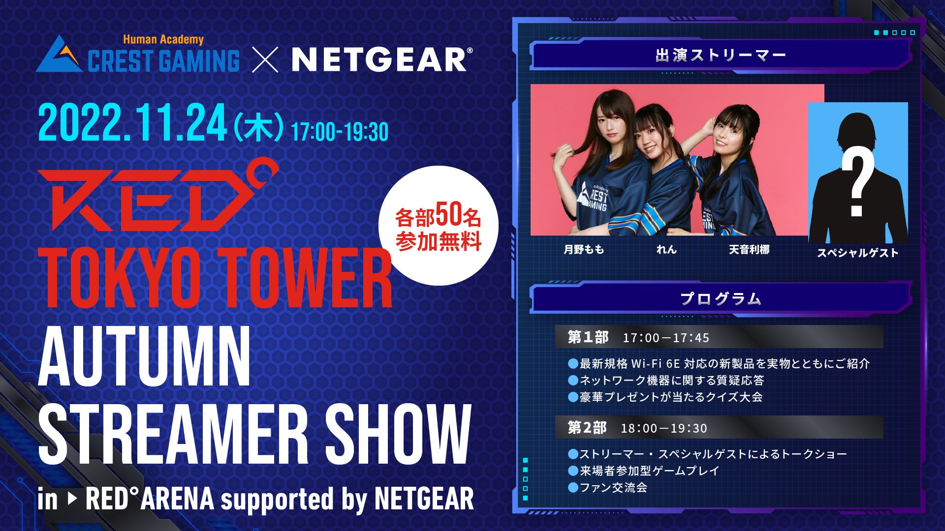 Human Academy CREST GAMING×ネットギア共催のストリーマーイベント「RED° TOKYO TOWER AUTUMN STREAMER SHOW」を開催!
