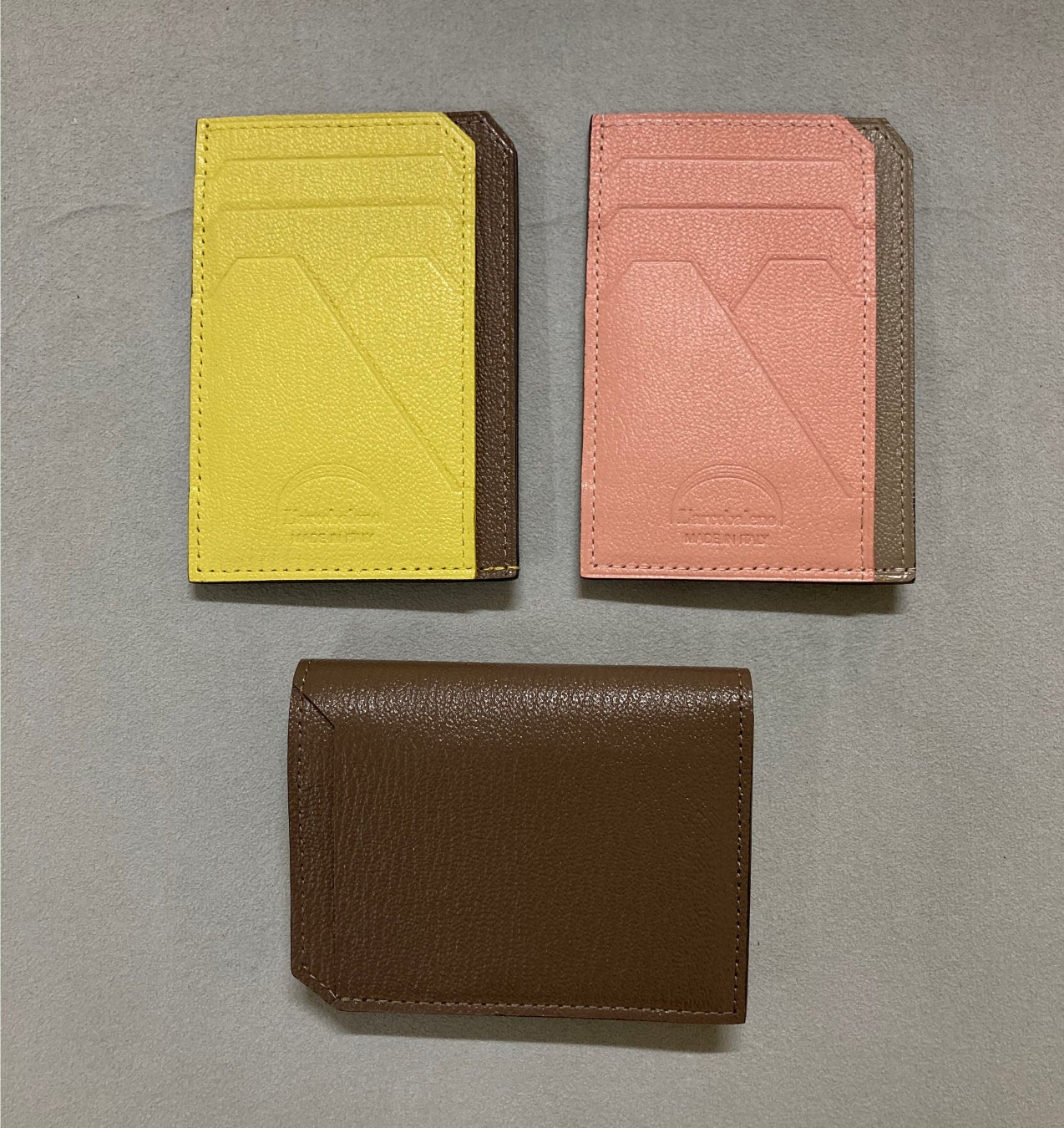 上:三つ折り財布 50,600円、右: コインケース付き二つ折り財布 46,200円、左:ジップマルチケース(小銭入れ) 24,200円
