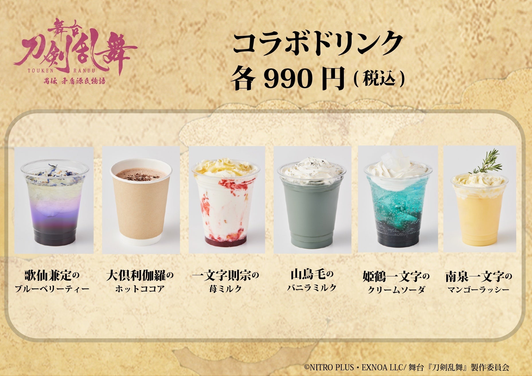 - 舞台『刀剣乱舞』禺伝 矛盾源氏物語×SHIBUYA TSUTAYAスペシャルコラボカフェ オリジナルメニュー