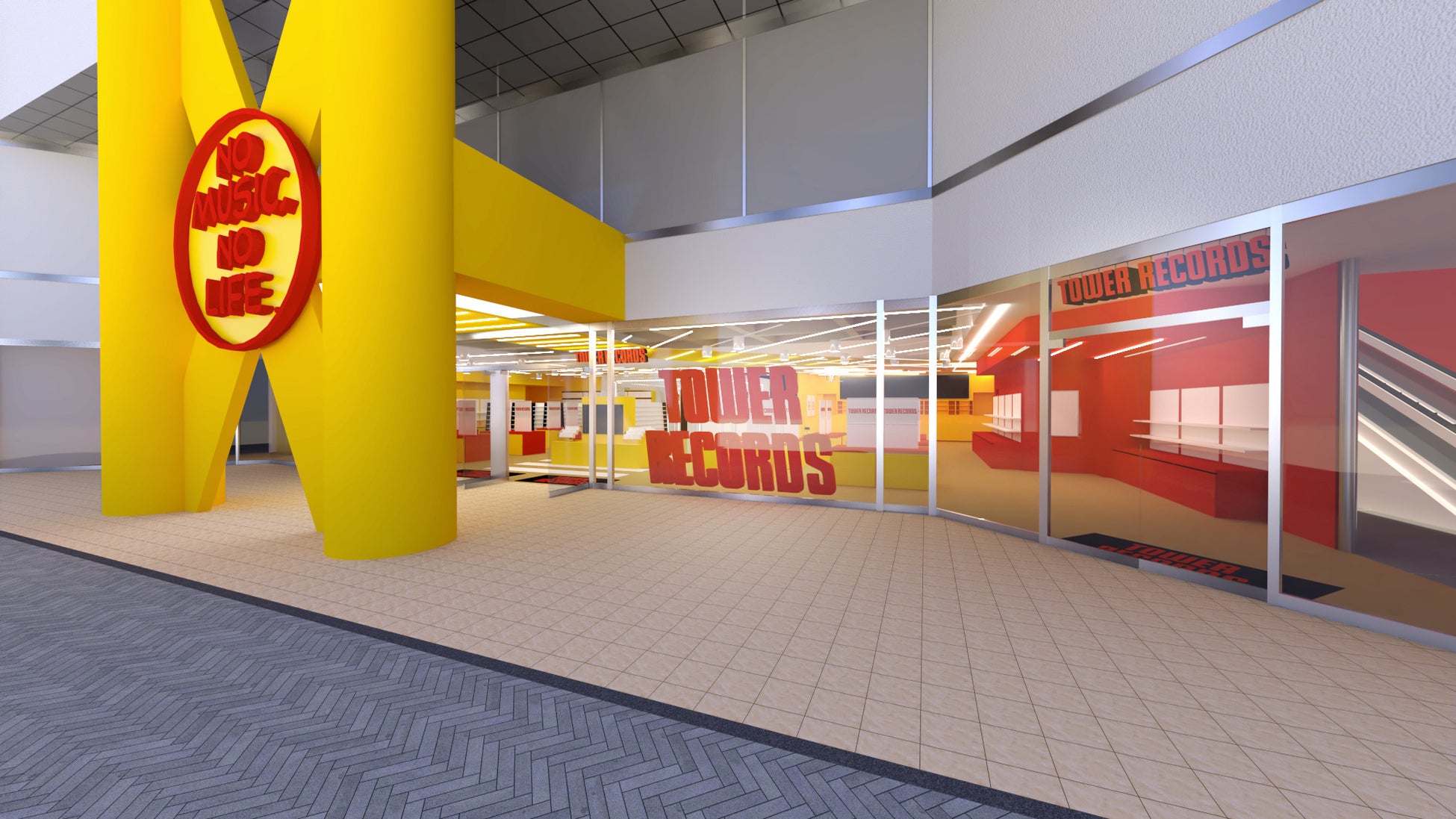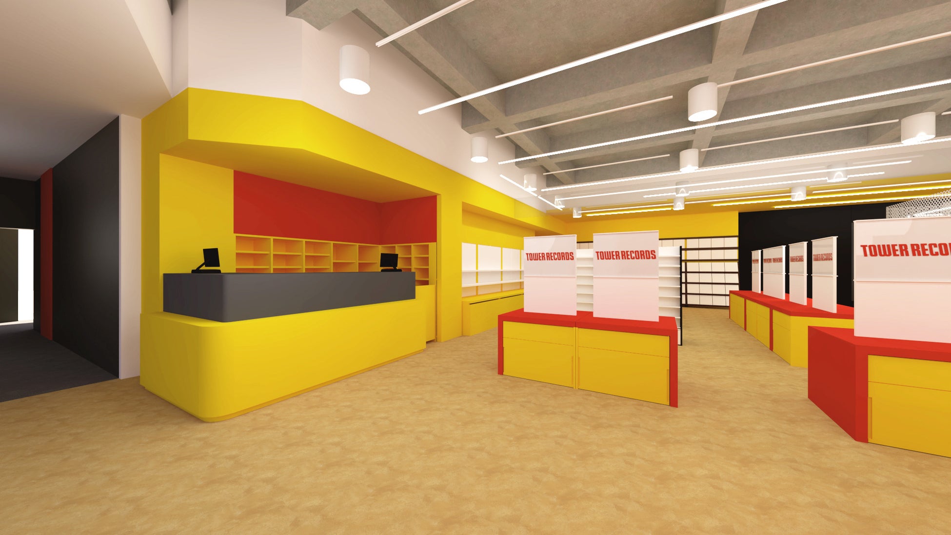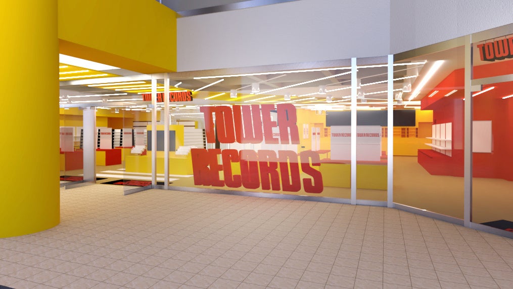 また店舗エントランスには、新しく巨大なTOWER RECORDSロゴのモニュメントを設置。よりスタイリッシュで目を引く外観に生まれ変わります。