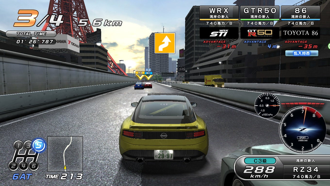 「自分好みのクルマできらびやかな都市をハイスピードで駆け抜ける」という「湾岸マキシ」シリーズの魅力はそのままに、話題の「新型フェアレディZ(RZ34)」をはじめ国内外13メーカー100車種以上の車が登場。従来シリーズから進化した操作感覚によりチューニングが進むにつれてパワフルさと重量感が加わり、「速いクルマを運転している実感」を得ることができます。