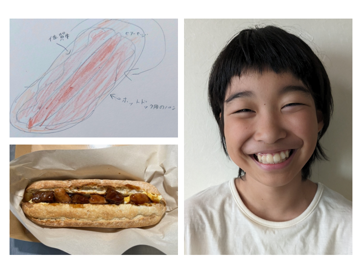 <さくらさんコメント>今回は受賞いただきありがとうございます。まさか二つも私の考えたメニューが受賞をするとは思っていなかったので本当に驚きました。また同時にとてもうれしかったです。私の妹は野菜ぎらいで野菜を残すので、野菜を入れないお肉メインのホットドッグを考えました。私もお肉が大好きだし、佐賀といえば佐賀牛が有名なのでお肉をたくさん入れたホットドッグを食べたいと思いました。妹や野菜ぎらいの友達でも残すことなく全部食べてもらいたいと思います。私もお肉がたくさん入ったホットドッグが食べられて嬉しいです。また、ほかの受賞者の方たちが考えたメニューも食べてみたいです。そして皆さんが私の考えたメニューを食べて笑顔になってほしいなと思います。