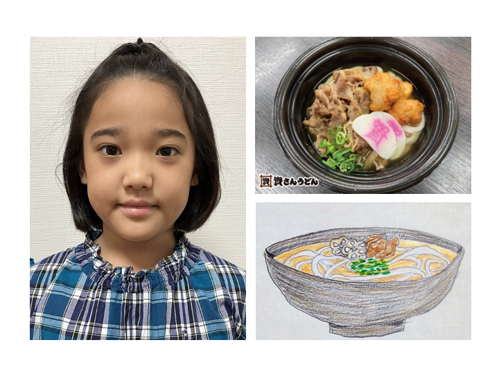佐賀県でのイベント開催とあり、佐賀県を代表する食材を使用した夢メニューの内容を期待していたところ、はなこさんが応募されたメニューに目が留まり、その夢を叶えたいという思いに一同が駆られました。応募されたイラストの表現も具体的な描写をされており、できるだけそのまま叶えられる商品づくりを心掛け、甘辛に炊いた「佐賀牛」、蓮根の食感が楽しい「ちぎり天」を表現しました。お子さまにとっても満足できる内容にしたいと思い、佐賀牛をふんだんに使用しています。今回はお子さまだけのご提供とはなりますが、九州を代表する和牛「佐賀牛」独特の旨味と佐賀を代表する季節の食材「蓮根」の歯ごたえ、資さんこだわりの出汁、そしてモチモチの麺との融合をぜひ、お楽しみください。(資さんうどん 商品本部 商品開発課 課長 定舎将太)