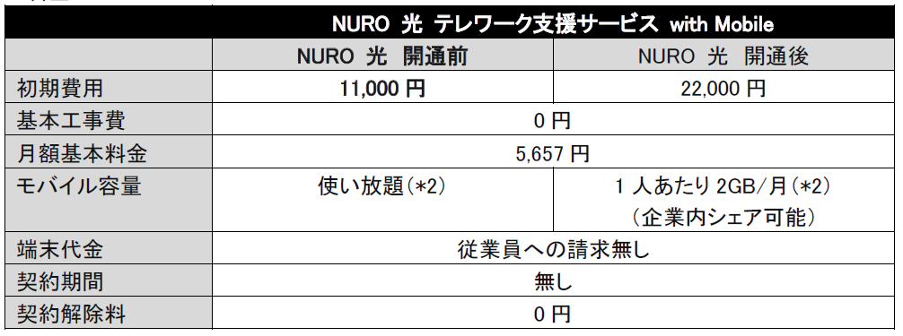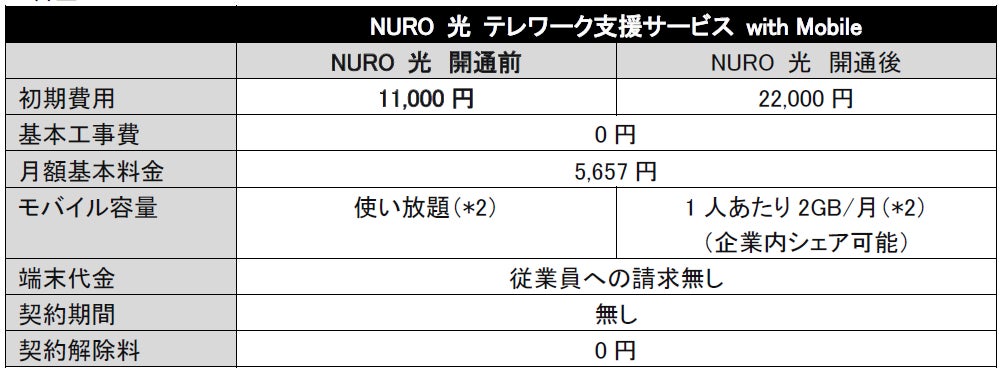 「NURO 光 テレワーク支援サービス with Mobile」 概要