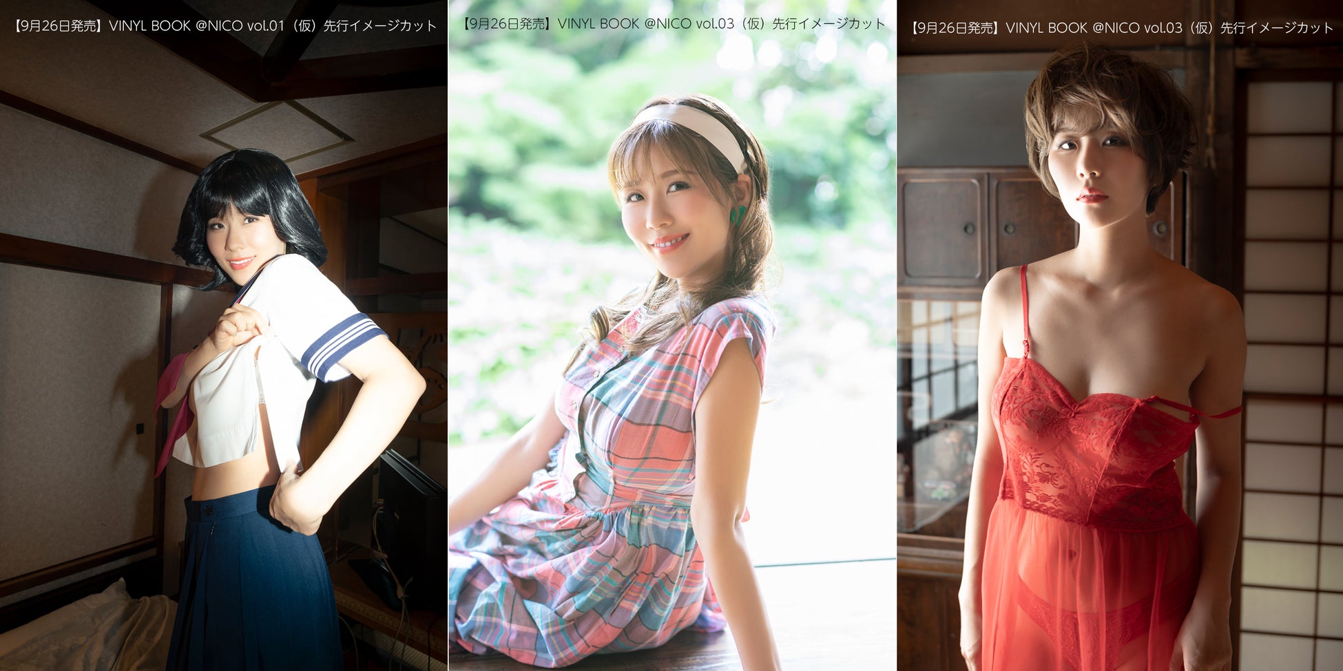今回の写真集は80年代をオマージュ。当時へワープしたような妄想世界をグラビア化。3つの世界線を1冊ずつにまとめ、一気に3冊同時に発売します。